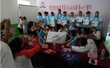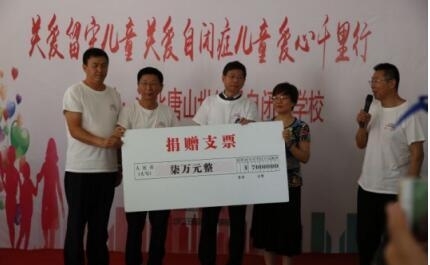由华兴新锐通信集团共同主办的关爱留守儿童、关爱自闭症儿童、爱心千里行”公益活动5月30日在北京雷殿生展览馆出发,继第一站、走进河北河间东方小学后,在6月1日儿童节,走进第二站——河北唐山“世纪星自闭症儿童学校”。