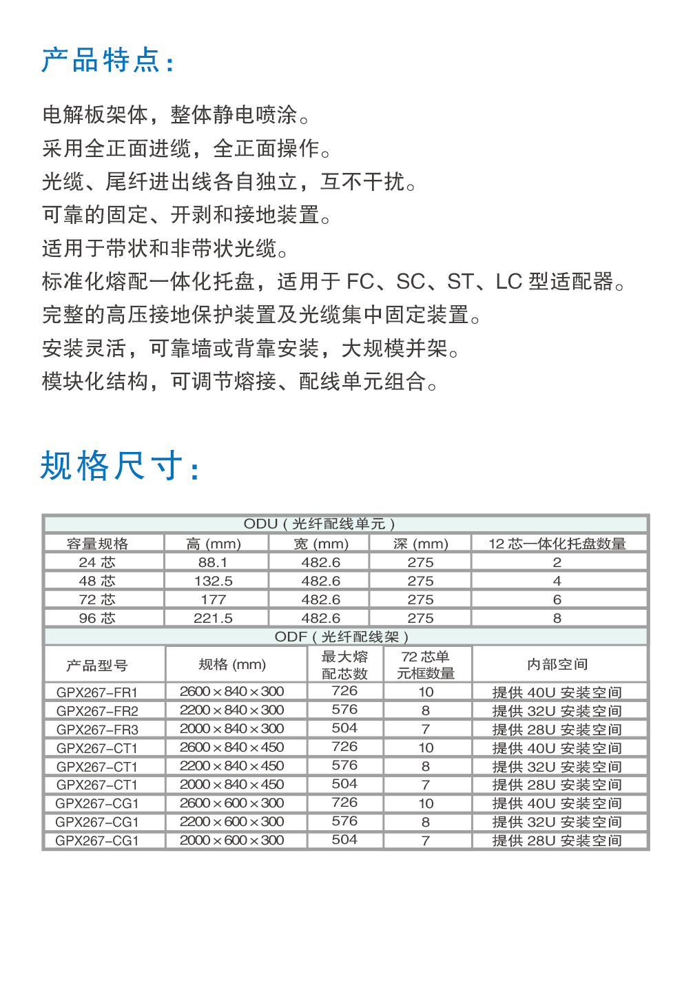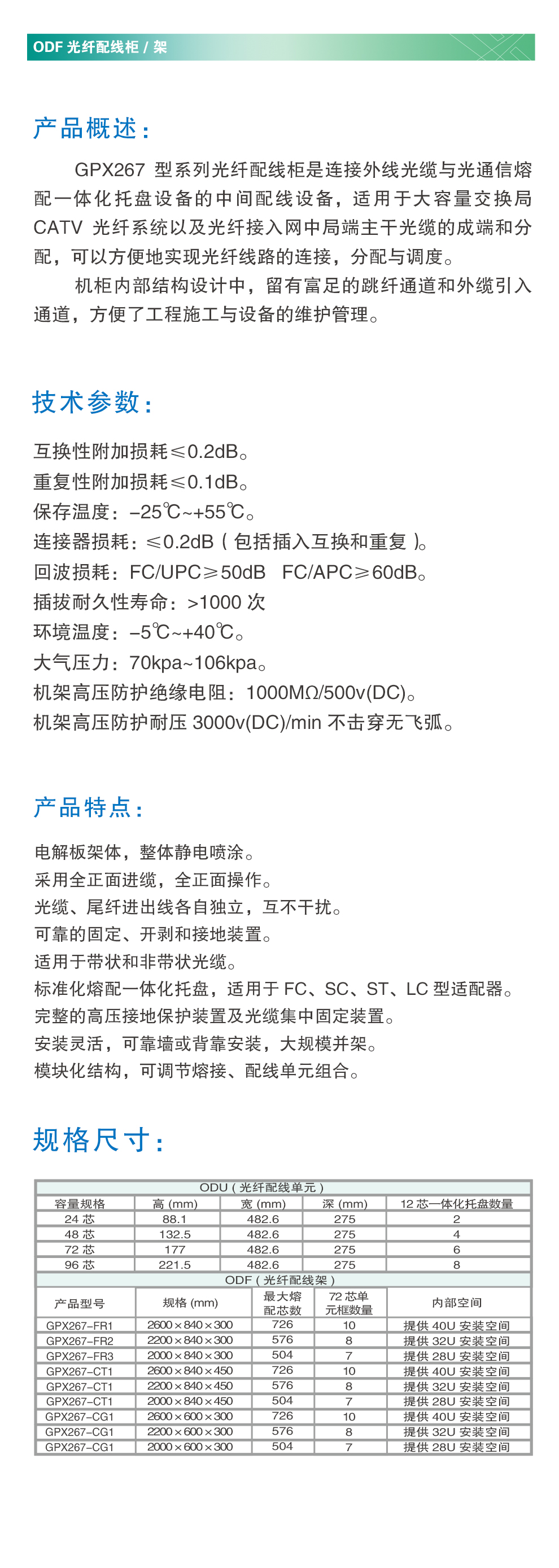 华兴新锐 GPX267型光纤配线架