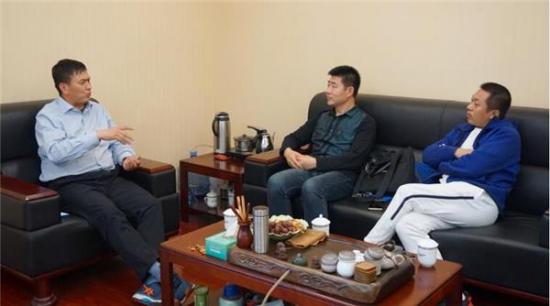 华兴新锐通信科技集团有限公司董事长阎志兵(左一)接受记者专访